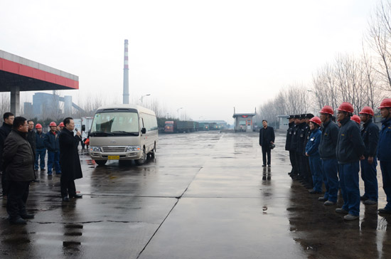 8點(diǎn)50分,司相芳總經(jīng)理帶領(lǐng)公司部分領(lǐng)導(dǎo)來(lái)到班車停放處,下夜班的職工列隊(duì)鼓掌歡迎。司總發(fā)表了熱情洋溢的新年講話。司總說(shuō),在新春佳節(jié)之際,全體員工為了確保節(jié)日期間的安全生產(chǎn),仍然奮斗在生產(chǎn)一線,感謝大家的辛勤工作,祝大家在新的一年里工作順利、合家幸福,萬(wàn)事如意!