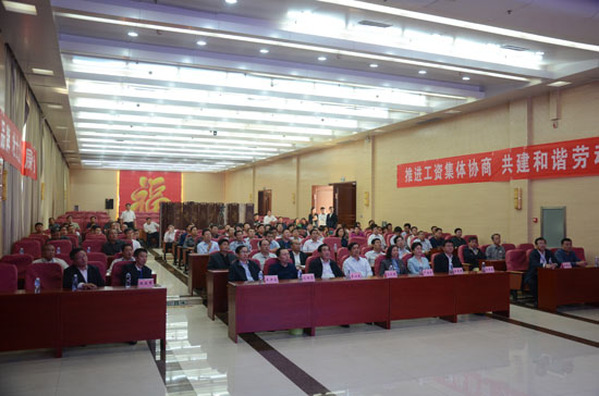 本網訊 10月14日,省總工會副主席馮慶祿帶領全省工資集體協(xié)商工作現(xiàn)場推進會與會人員,來公司檢查指導工作。濟寧市人大常委會副主任、市總工會主席羅心光,濟寧市總工會黨組書記、常務副主席岳秀銀,鄒城市委副書記朱瑞顯,市政協(xié)副主席、市總工會主席姚振西,公司總經理司相芳、副總經理高小明等陪同。全省各地市總工會分管負責人,法律工作部長,省產業(yè)工會、大企業(yè)工會、省直機關工會負責人近百人參加。