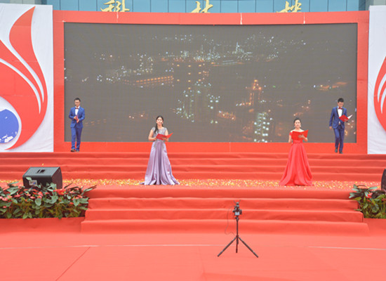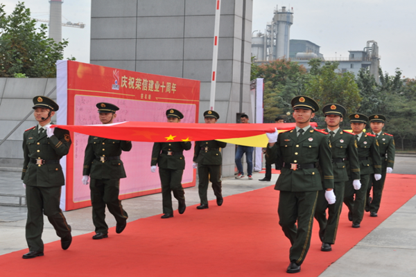 為十九大錦上添花,為中國(guó)夢(mèng)增光添彩,為奮斗者加油,為優(yōu)秀奮斗者點(diǎn)贊。10月18日上午10:00,乘著十九大勝利召開(kāi)的東風(fēng),榮信建業(yè)十周年慶典大會(huì)在科技樓前隆重舉行。整個(gè)慶典現(xiàn)場(chǎng)氣氛熱烈高昂,場(chǎng)面宏大喜慶。榮信集團(tuán)領(lǐng)導(dǎo),各部室、分廠、中心、子公司中層管理人員,特邀嘉賓及員工家屬代表,百名優(yōu)秀奮斗者及各部門(mén)員工代表共1000余人參加了慶典活動(dòng)。