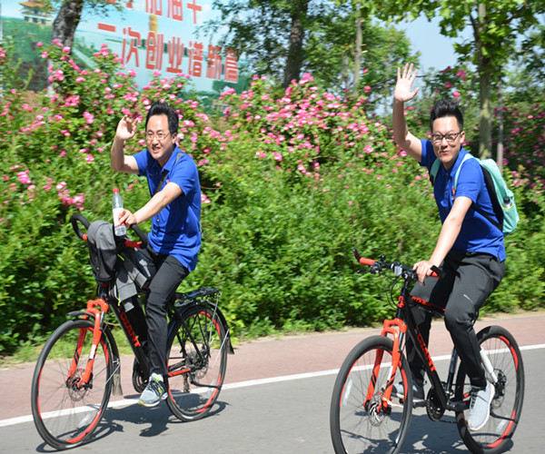 本次參與騎行活動的人員統(tǒng)一穿著印有集團公司LOGO的Polo衫,騎行的單車采用榮信建廠十周年統(tǒng)一發(fā)放的自行車,騎行路線主要是沿太白湖環(huán)湖騎行一周,路程約13km。為確?;顒禹樌M行,公司在騎行沿途設(shè)置了補水站點,并安排若干后勤保障人員提供補給服務(wù)。