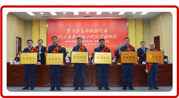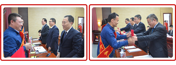 在奮進的樂曲聲中,集團領導先后為先進單位和先進個人代表頒獎。